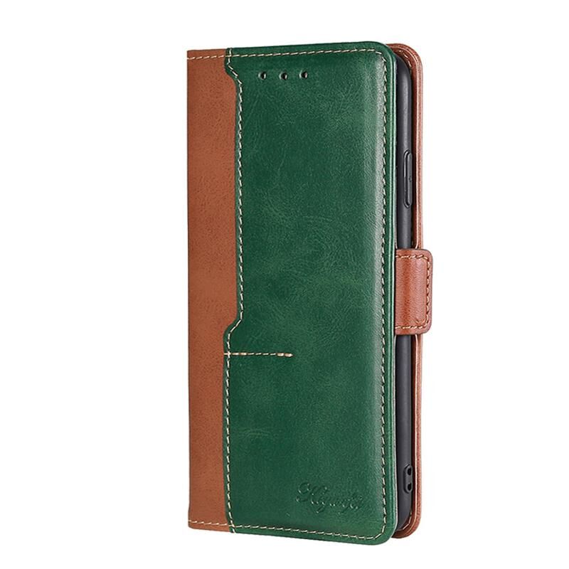 Για Samsung Galaxy S23 5G αντίθεση χρώμα πλευρά πόρπη δερμάτινη θήκη τηλεφώνου (ανοιχτό καφέ + πράσινο)