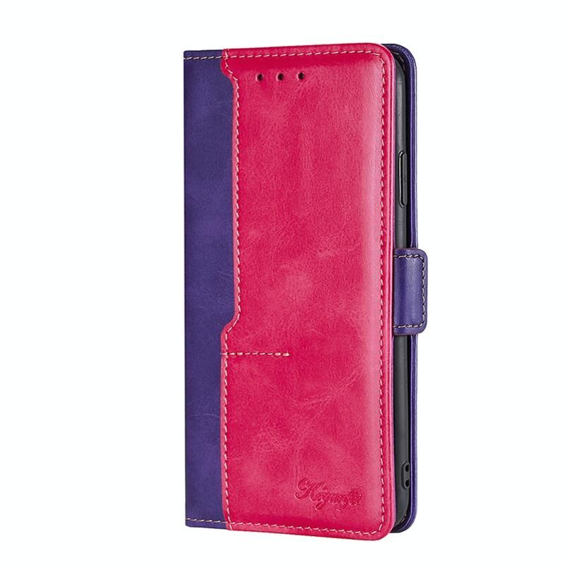 Για Samsung Galaxy S23 + 5G αντίθεση χρώμα πλευρά πόρπη δερμάτινη θήκη τηλεφώνου (μωβ + ροζ κόκκινο)