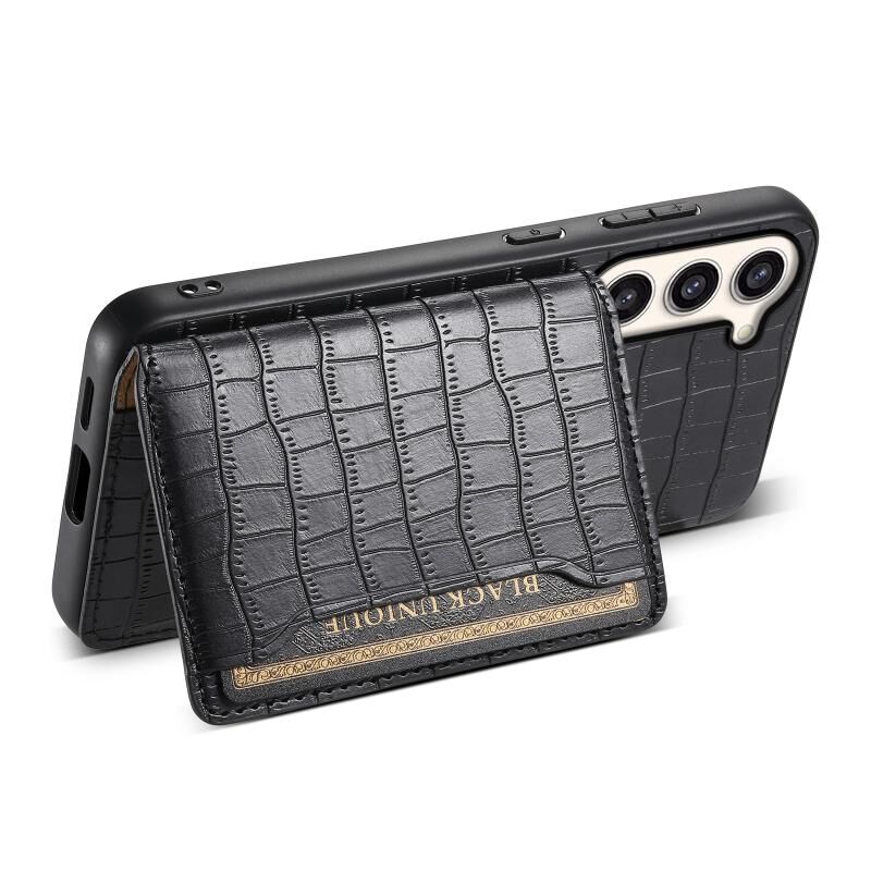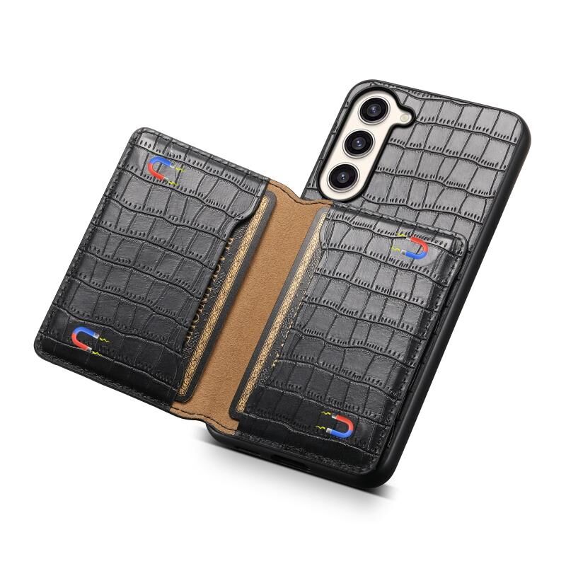 Θήκη κινητού τηλεφώνου πλήρους κάλυψης με σχέδιο τσάντας κάρτας υφής κροκόδειλου για Samsung Galaxy S23+ 5G (Μαύρο)
