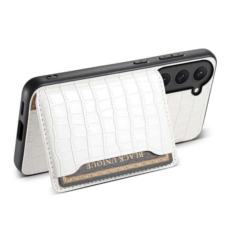 Θήκη κινητού τηλεφώνου πλήρους κάλυψης με σχέδιο τσάντας κάρτας υφής κροκόδειλου για Samsung Galaxy S23 5G (Μαύρο)