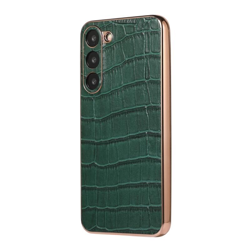 For Samsung Galaxy S23 5G Crocodile Texture Genuine Leather Electroplating Phone Case(Dark Green)