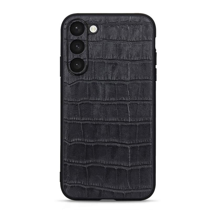 Θήκη τηλεφώνου από γνήσιο δέρμα με υφή κροκόδειλου για Samsung Galaxy S23+ 5G (Μαύρο)