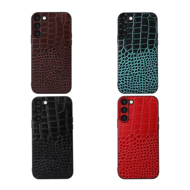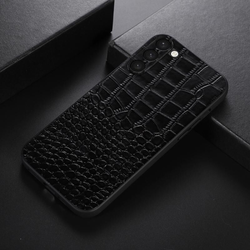 Θήκη τηλεφώνου από γνήσιο δέρμα με υφή κροκόδειλου για Samsung Galaxy S23 5G (Μαύρο)