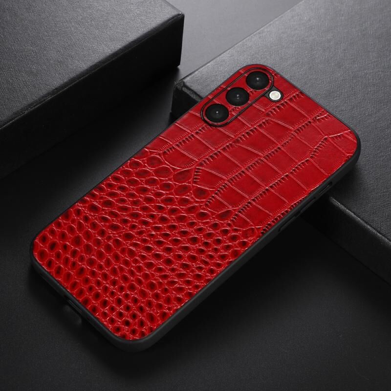 Θήκη τηλεφώνου από γνήσιο δέρμα με υφή κροκόδειλου για Samsung Galaxy S23 5G (Μαύρο)
