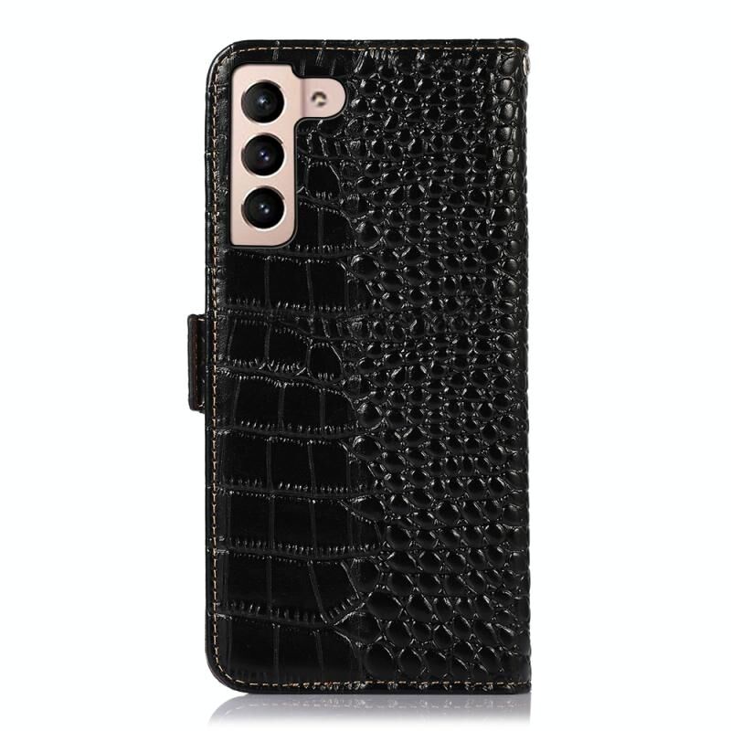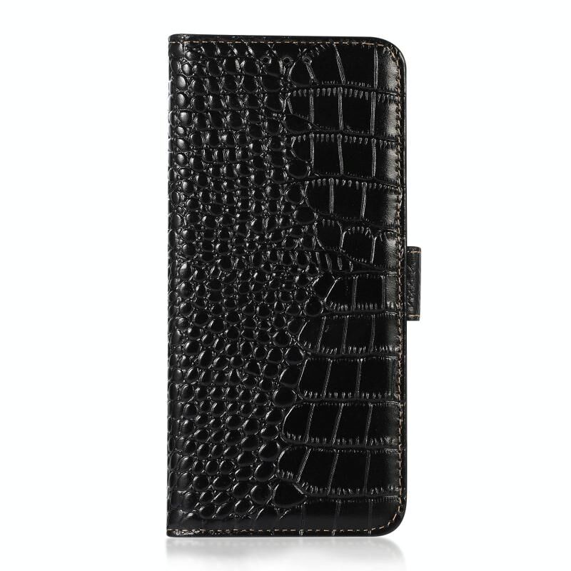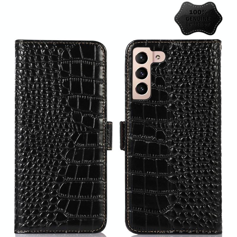 Θήκη τηλεφώνου από γνήσιο δέρμα αγελάδας με επικάλυψη κροκόδειλου για Samsung Galaxy S23 5G (Μαύρο)