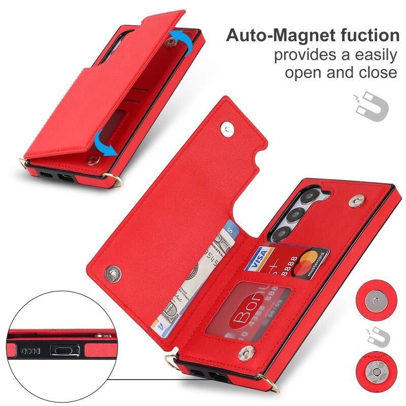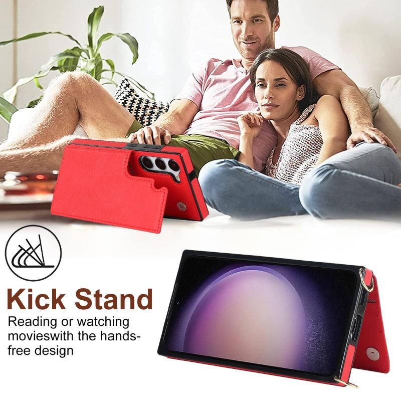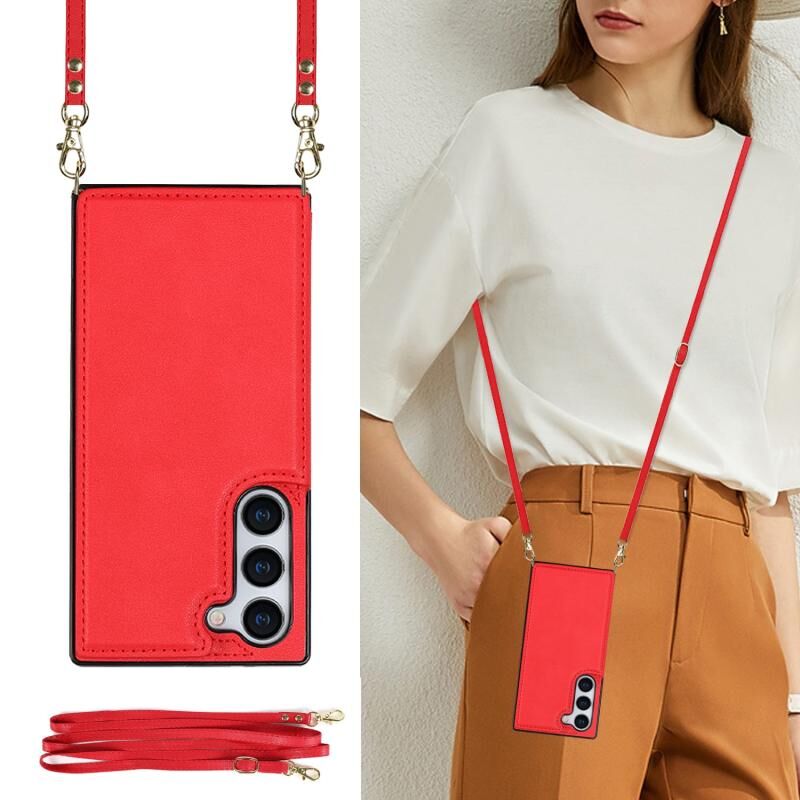 Για Samsung Galaxy S23 5G Cross-body τετράγωνο διπλό πόρπη Flip κάρτα τσάντα TPU + PU υπόθεση (κόκκινο)