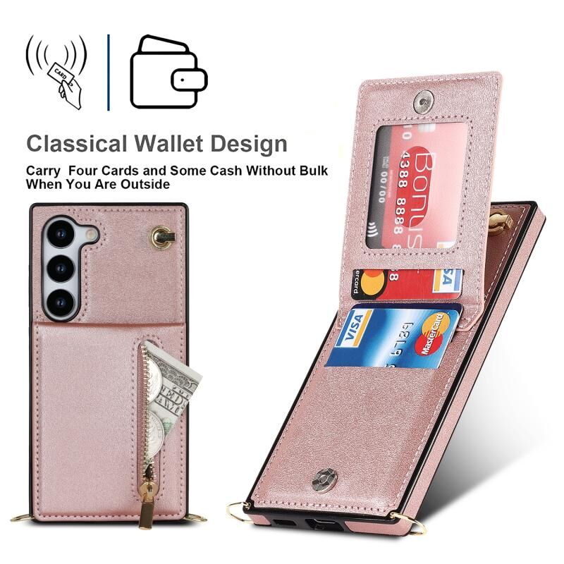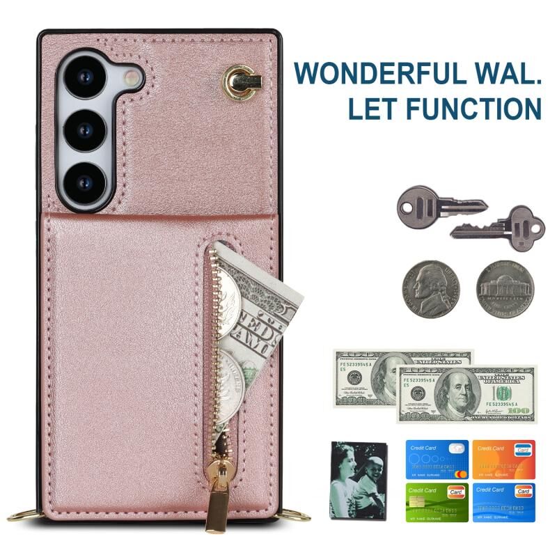Για Samsung Galaxy S23+ 5G Cross-body φερμουάρ τετράγωνο TPU + PU πίσω κάλυμμα θήκη (Ροζ χρυσός)