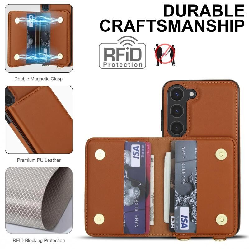 For Samsung Galaxy S23 5G Crossbody Dual-buckle Wallet RFID Back Leather Phone Case(Brown)