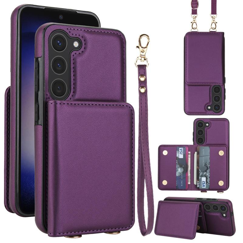 For Samsung Galaxy S23+ 5G Crossbody Dual-buckle Wallet RFID Back Leather Phone Case(Dark Purple)