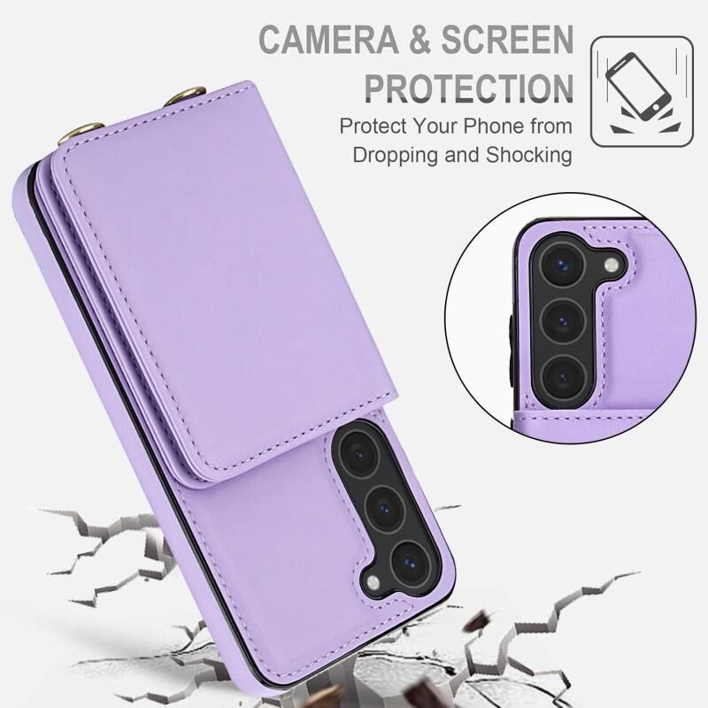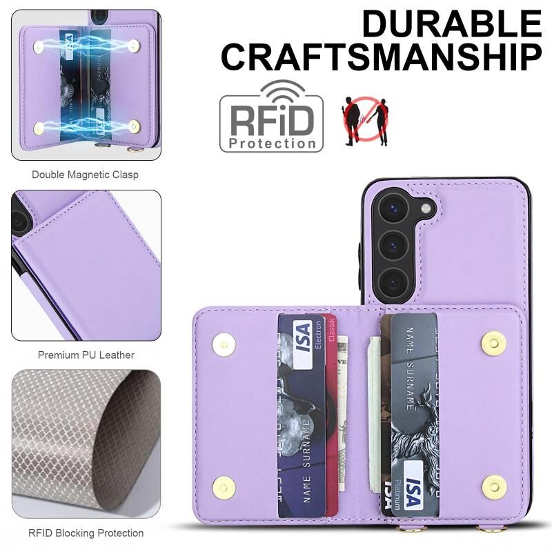 For Samsung Galaxy S23 5G Crossbody Dual-buckle Wallet RFID Back Leather Phone Case(Light Purple)