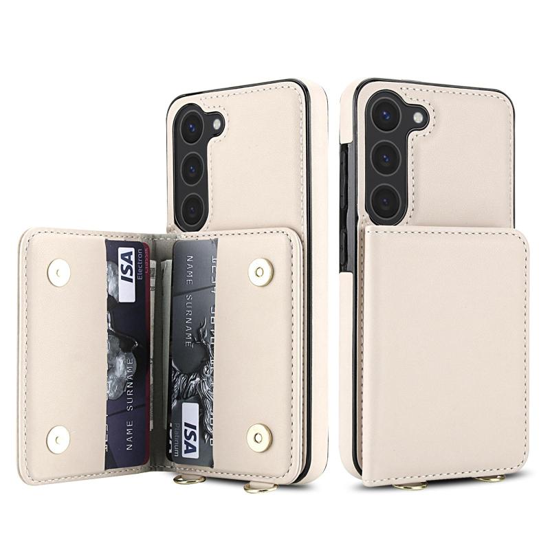 For Samsung Galaxy S23+ 5G Crossbody Dual-buckle Wallet RFID Back Leather Phone Case(White)