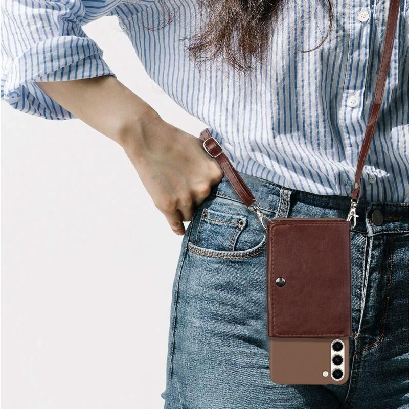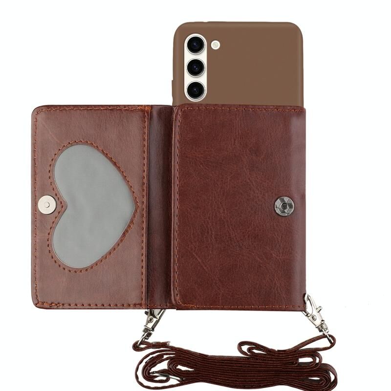 Για Samsung Galaxy S23+ 5G Crossbody Lanyard πορτοφόλι κάρτα τσάντα τηλέφωνο υπόθεση (Καφέ)