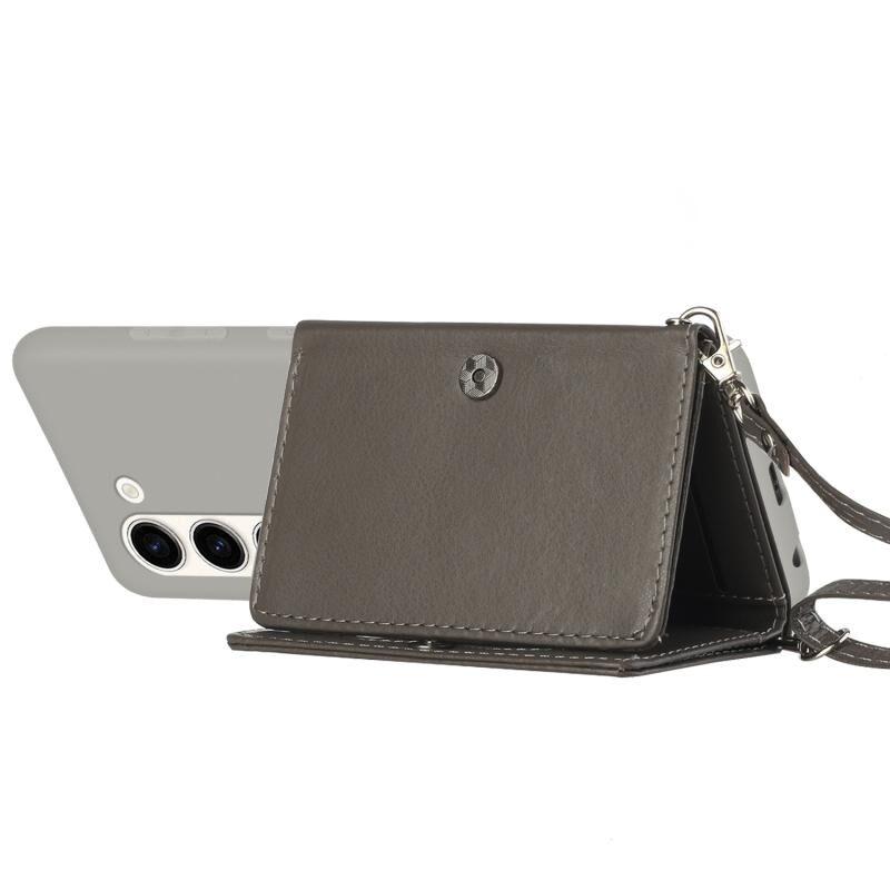 Για Samsung Galaxy S23+ 5G Crossbody Lanyard πορτοφόλι κάρτα τσάντα τηλέφωνο υπόθεση (Γκρι)