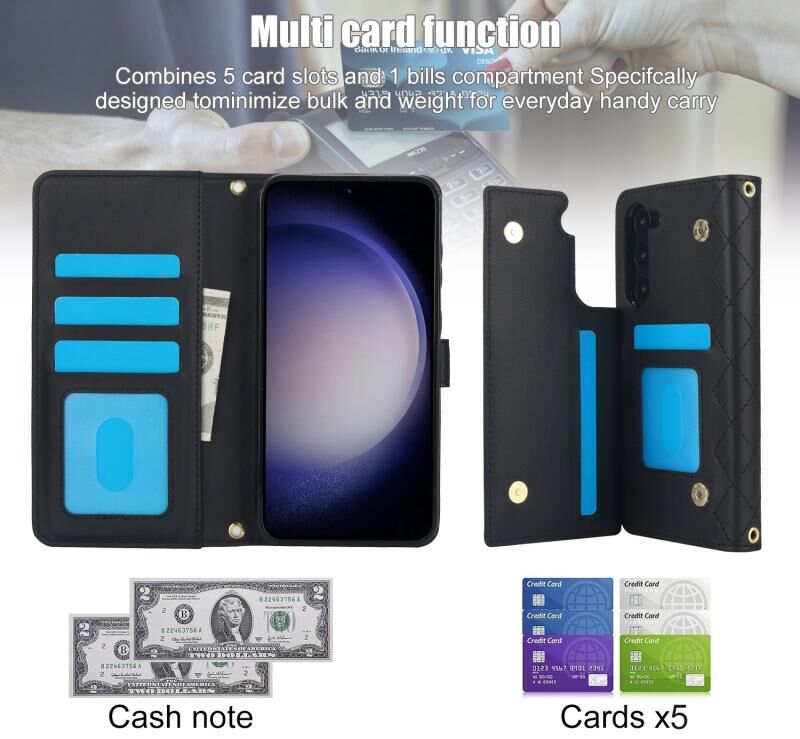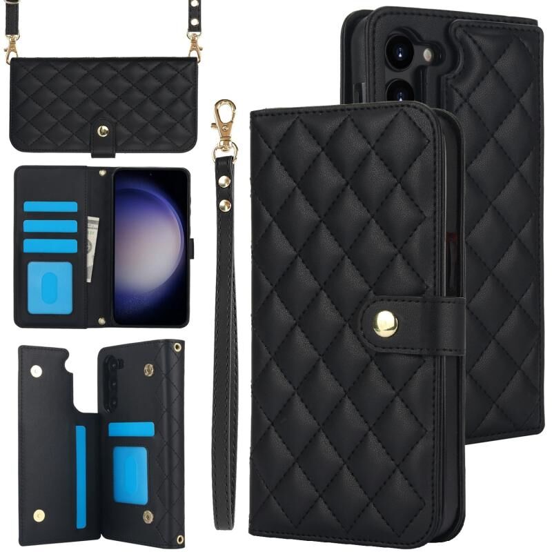 Για Samsung Galaxy S23+ 5G Crossbody Πολυλειτουργική θήκη τηλεφώνου από δέρμα (Μαύρο)