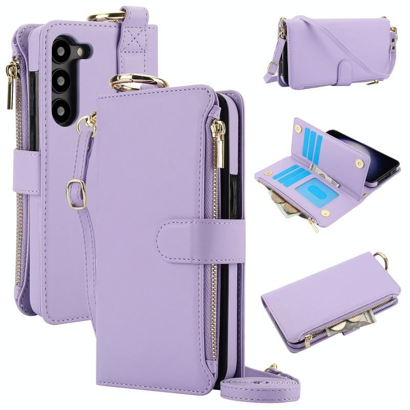 Για Samsung Galaxy S23+ 5G Δαχτυλίδι Crossbody Πολυλειτουργική θήκη τηλεφώνου δερμάτινο πορτοφόλι (μωβ)