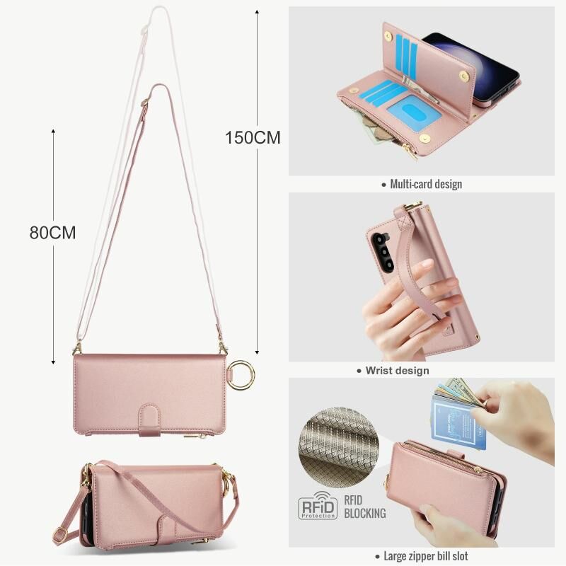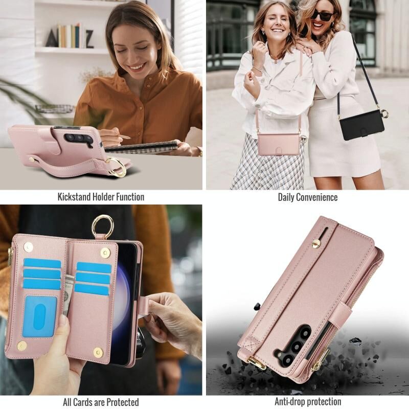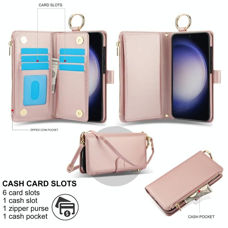 Για Samsung Galaxy S23+ 5G Δαχτυλίδι σταυρού Πολυλειτουργική θήκη τηλεφώνου δερμάτινο πορτοφόλι (ροζ χρυσό)
