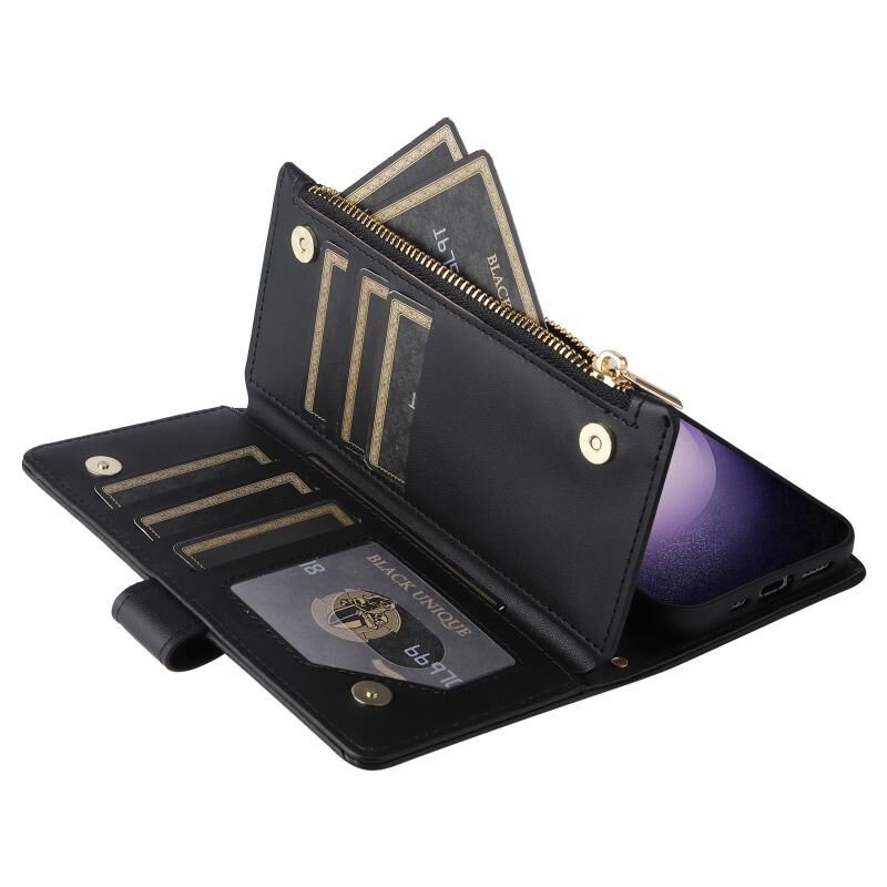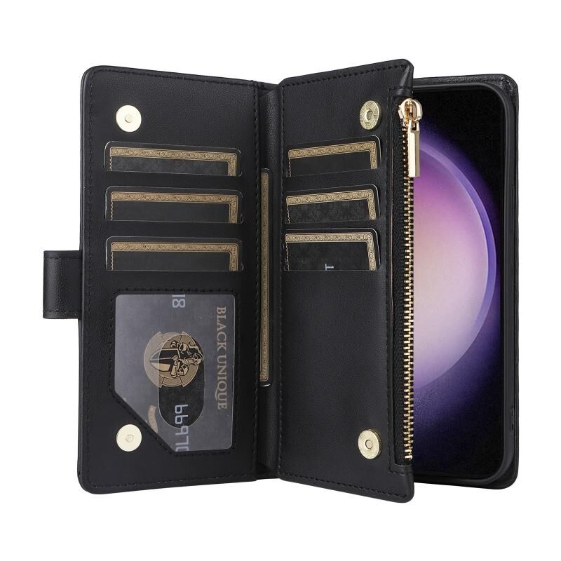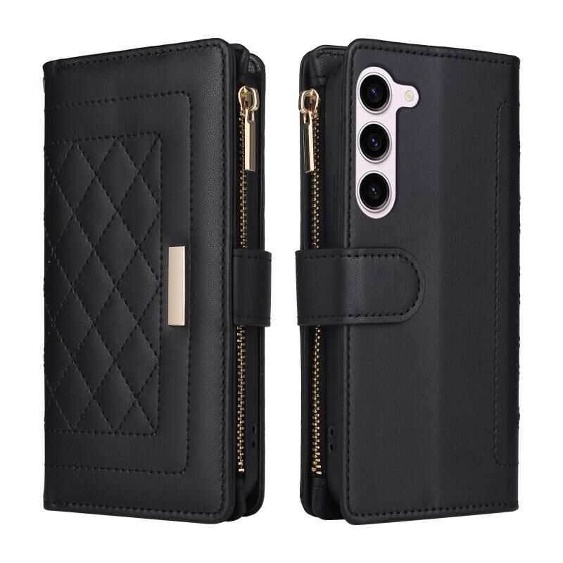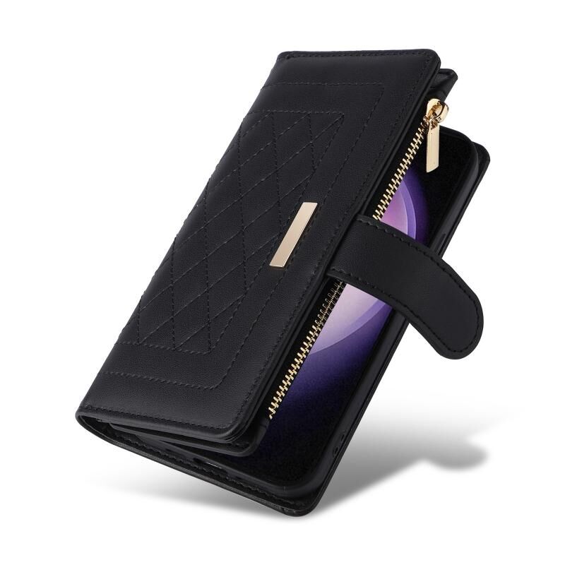 Για Samsung Galaxy S23 5G Crossbody φερμουάρ πορτοφόλι ρόμβος δερμάτινη θήκη τηλεφώνου (μαύρο)