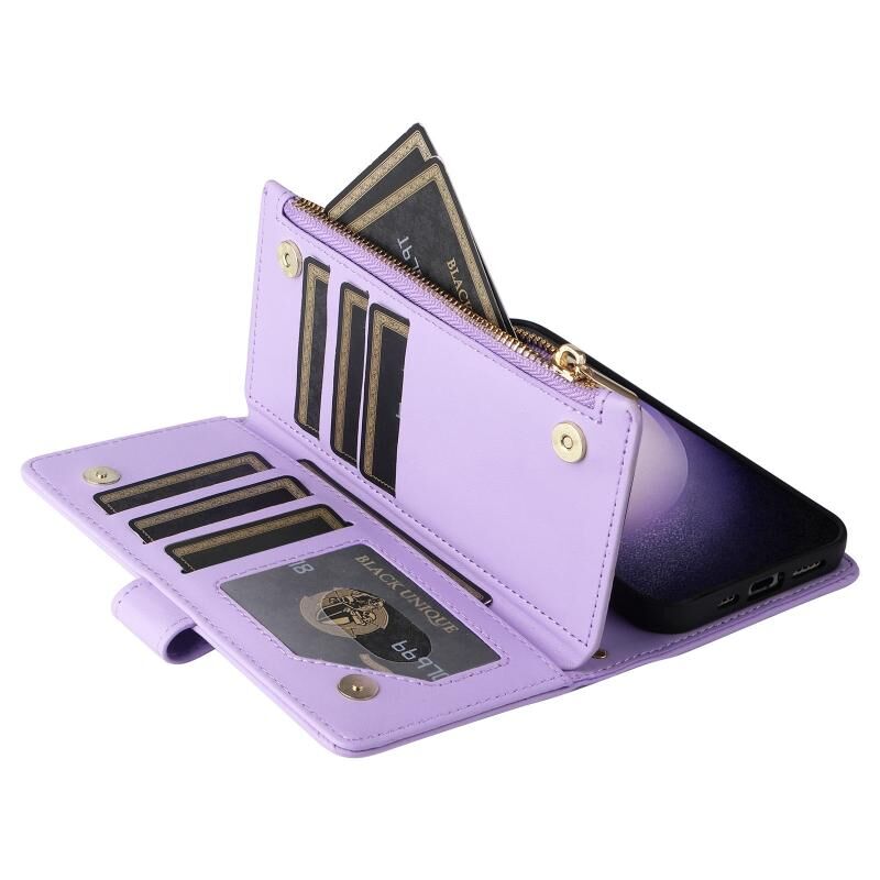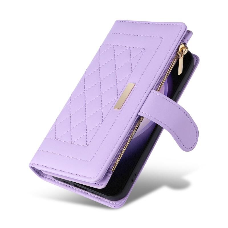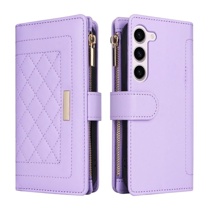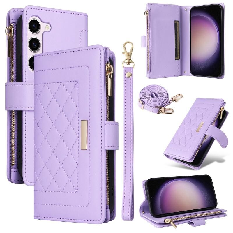 Για Samsung Galaxy S23 5G Crossbody φερμουάρ πορτοφόλι ρόμβος δερμάτινη θήκη τηλεφώνου (μωβ)