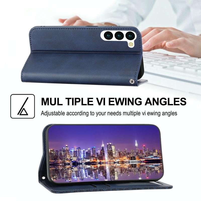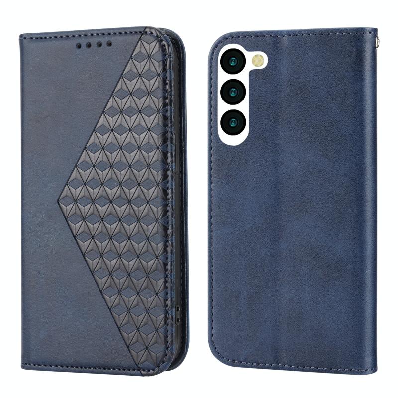 Θήκη κινητού Samsung Galaxy S23+ 5G από δέρμα με μαγνητική απορρόφηση, με υφή μοσχαρίσιου δέρματος σε κυβικό πλέγμα (Μπλε)