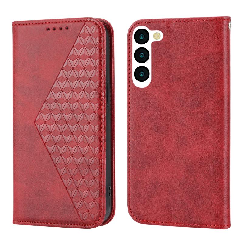 Θήκη κινητού Samsung Galaxy S23 5G από δέρμα με μαγνητική απορρόφηση, με υφή μοσχαρίσιου δέρματος και κυβικό σχέδιο (Κίτρινο)