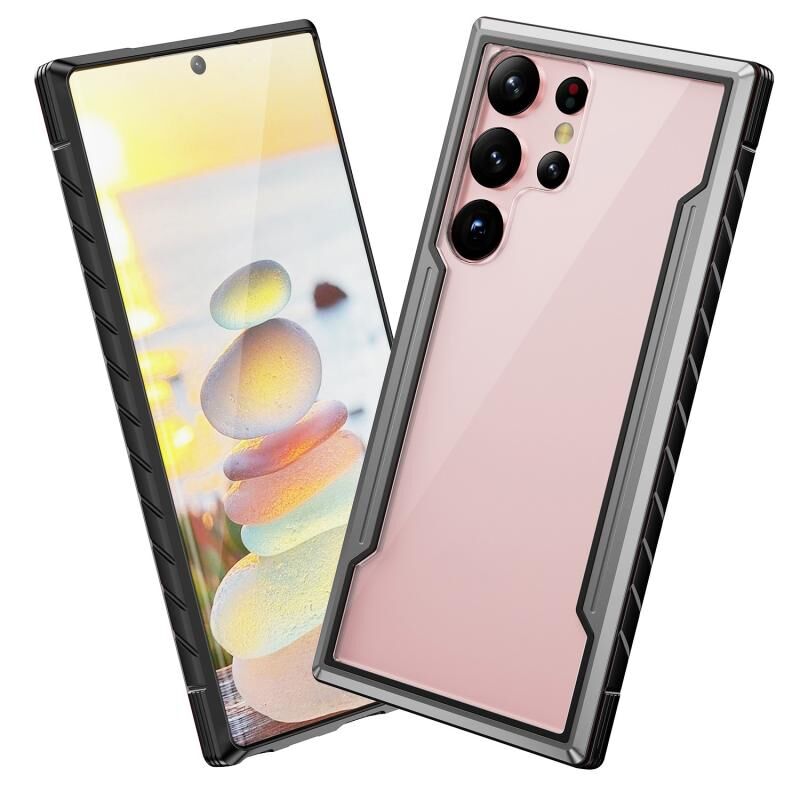 Για Samsung Galaxy S23+ 5G Defender Metal Clear PC Soft TPU τηλέφωνο υπόθεση (γκρι μαύρο)