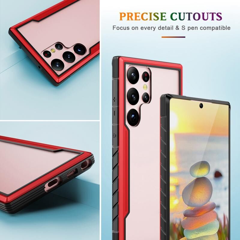 Για Samsung Galaxy S23 5G Defender Metal Clear PC Soft TPU τηλέφωνο υπόθεση (κόκκινο)