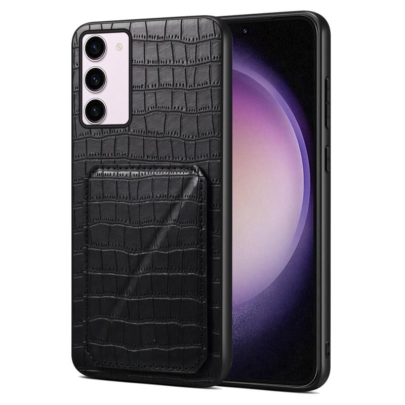 Θήκη τηλεφώνου για Samsung Galaxy S23 5G Denior, απομίμηση δέρματος κροκόδειλου με βάση στήριξης (Μαύρο) (Denior)