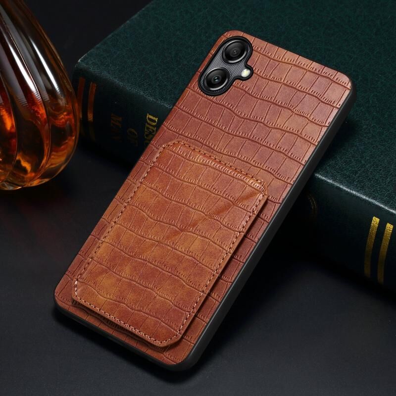 Θήκη τηλεφώνου για Samsung Galaxy S23+ 5G Denior, απομίμηση δέρματος κροκόδειλου με βάση στήριξης (Μαύρο) (Καφέ)