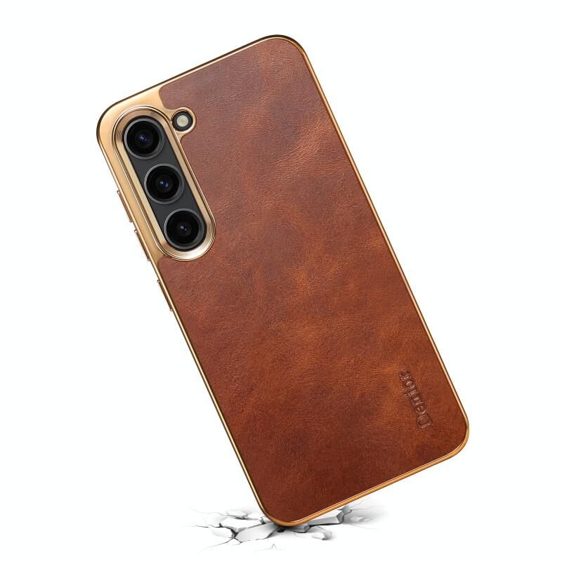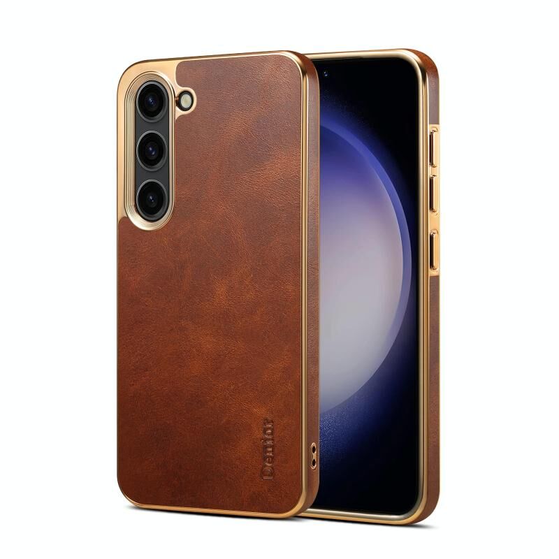 Για Samsung Galaxy S23+ 5G Denior Oil Wax Leather Electroplating Phone Case (Brown) (Denior)