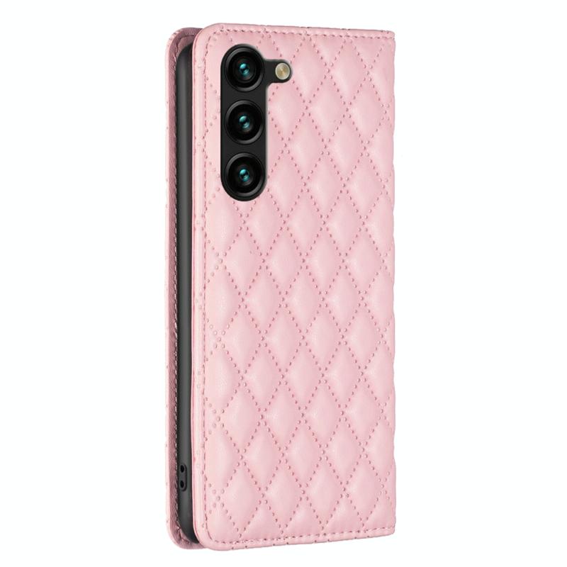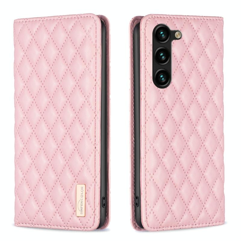 Θήκη τηλεφώνου Samsung Galaxy S23+ 5G, Δερμάτινη, Πτυσσόμενη, Μαγνητική, με σχέδιο διαμαντοειδούς πλέγματος (ρόζ)