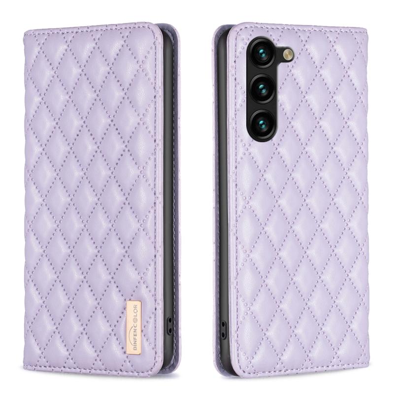 Θήκη τηλεφώνου Samsung Galaxy S23+ 5G, Δερμάτινη, Πτυσσόμενη, Μαγνητική, με σχέδιο διαμαντοειδούς πλέγματος (Μωβ)