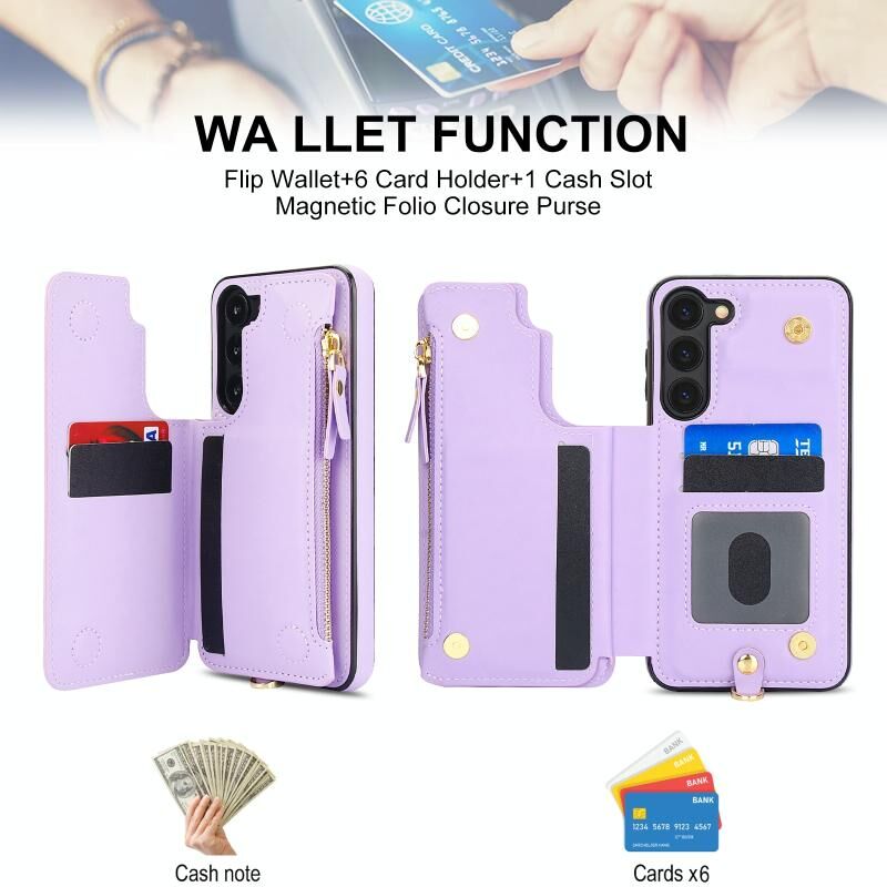 Θήκη τηλεφώνου Samsung Galaxy S23 5G από δέρμα με διπλό κλείσιμο με φερμουάρ και RFID, με κοντό κορδόνι (Λευκό)