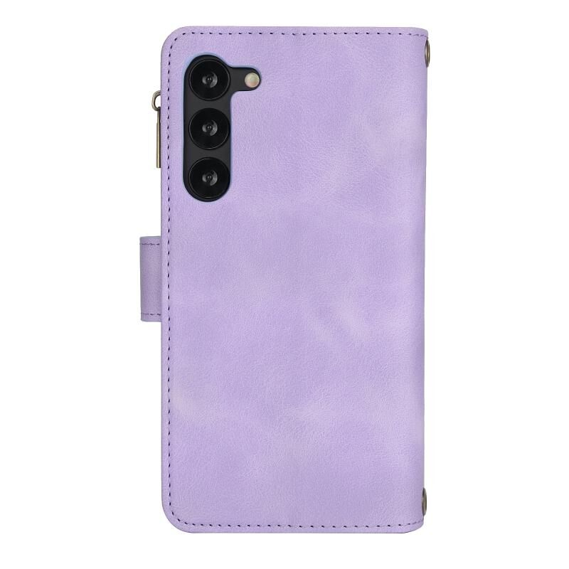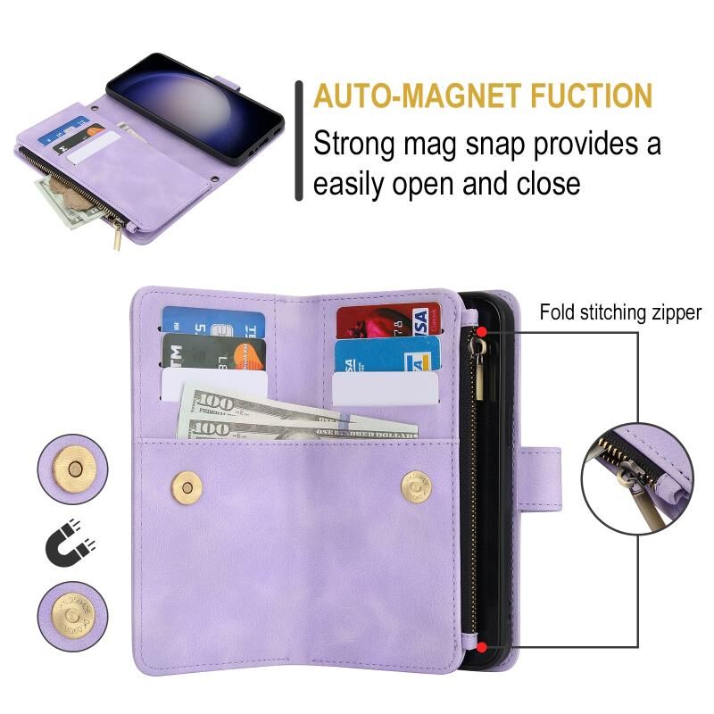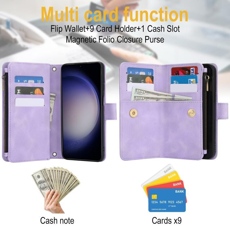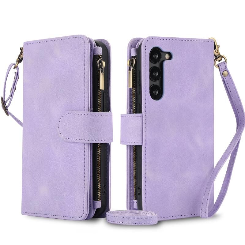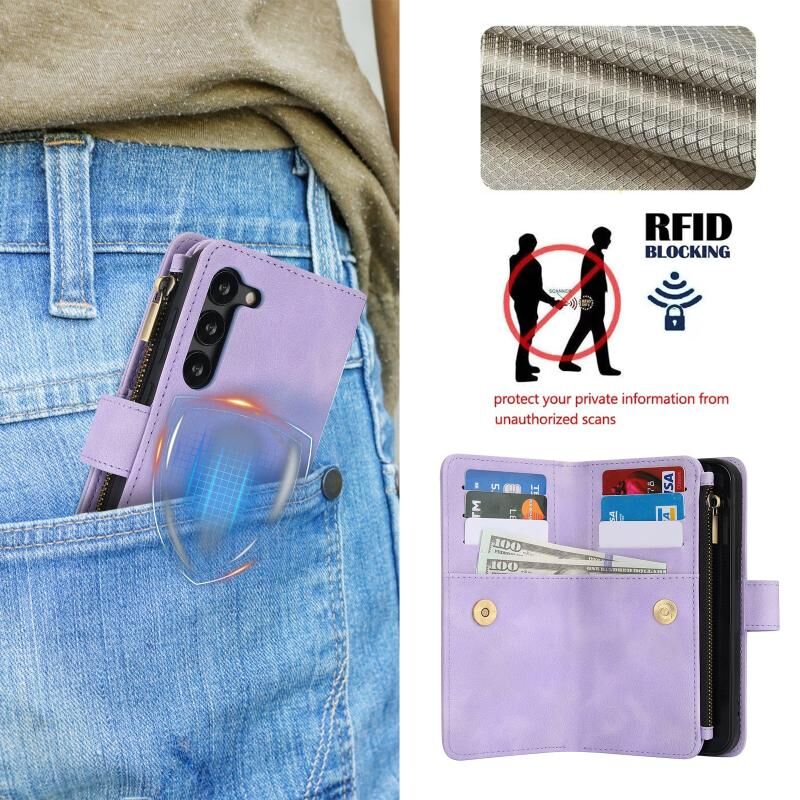 Για Samsung Galaxy S23 5G Dream 9-κάρτα φερμουάρ πορτοφόλι RFID δερμάτινη θήκη τηλεφώνου με κορδόνι (Μωβ)