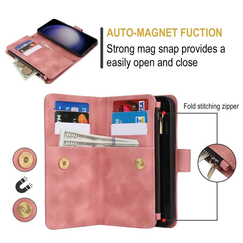 2. Λειτουργία πορτοφολιού πολλαπλών καρτών: 9 υποδοχές για κάρτες και 1 θήκη μετρητών με φερμουάρ για να αποθηκεύετε τις πιστωτικές σας κάρτες, μετρητά ή μικρά χαρτονομίσματα για τις καθημερινές σας ανάγκες.