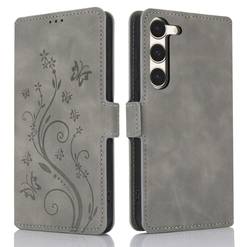 For Samsung Galaxy S23+ 5G Dreamy Butterfly Love Flower Embossed Leather Phone Case(Grey)
