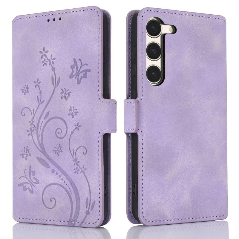 For Samsung Galaxy S23+ 5G Dreamy Butterfly Love Flower Embossed Leather Phone Case(Purple)
