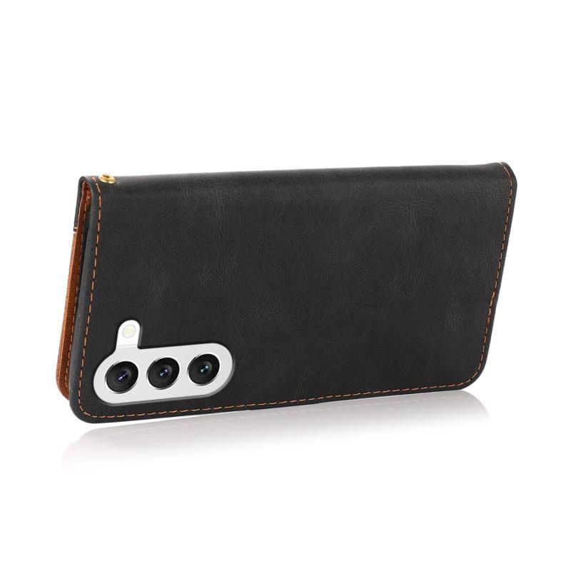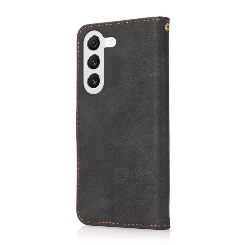 Θήκη τηλεφώνου δερμάτινη με διπλή ραφή για Samsung Galaxy S23+ 5G (Μαύρο καφέ)