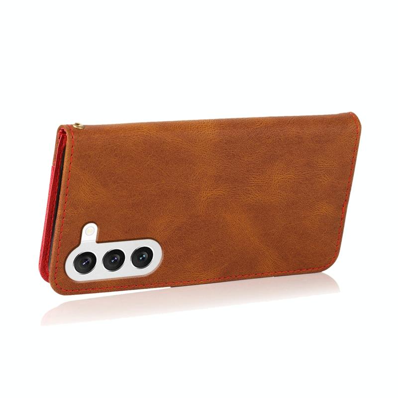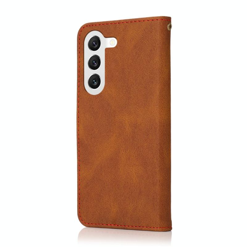 Θήκη τηλεφώνου δερμάτινη με διπλή ραφή για Samsung Galaxy S23 5G (Καφέ Κόκκινο)