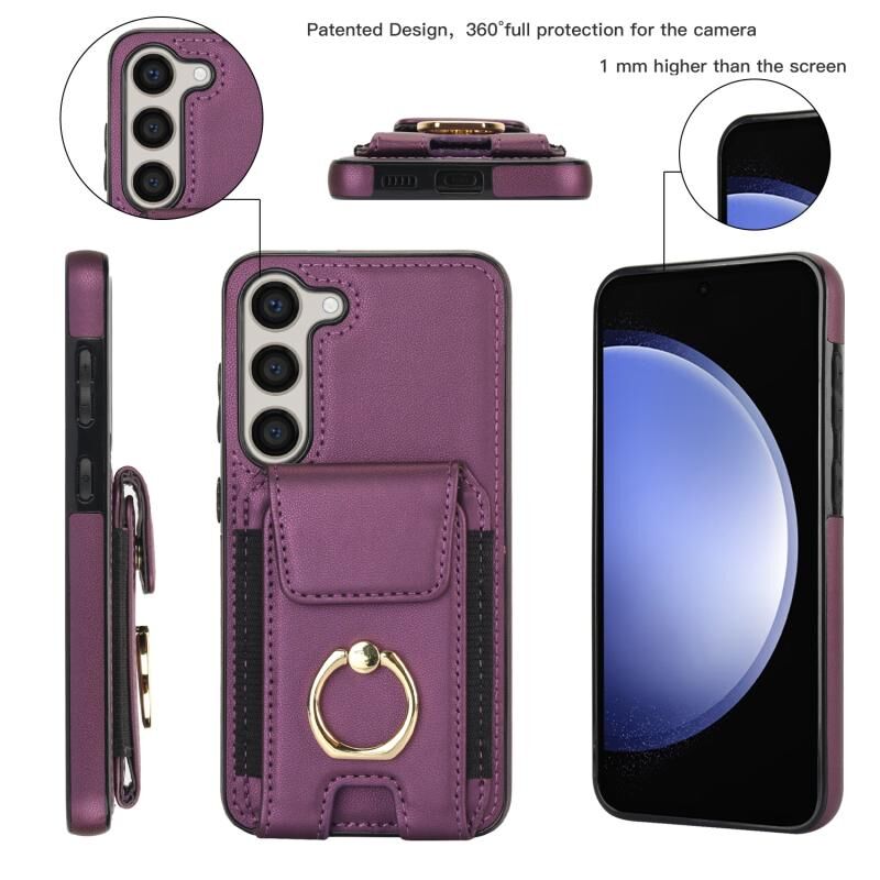 Για Samsung Galaxy S23 5G Ελαστική κάρτα τσάντα δαχτυλίδι τσάντα κάτοχος υπόθεση τηλεφώνου (μωβ)