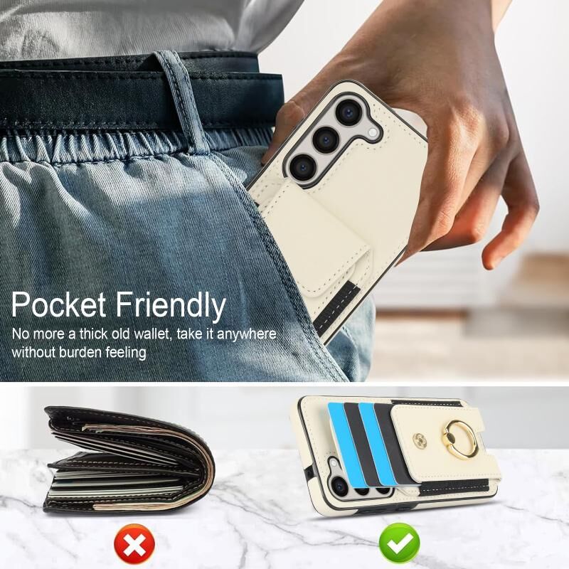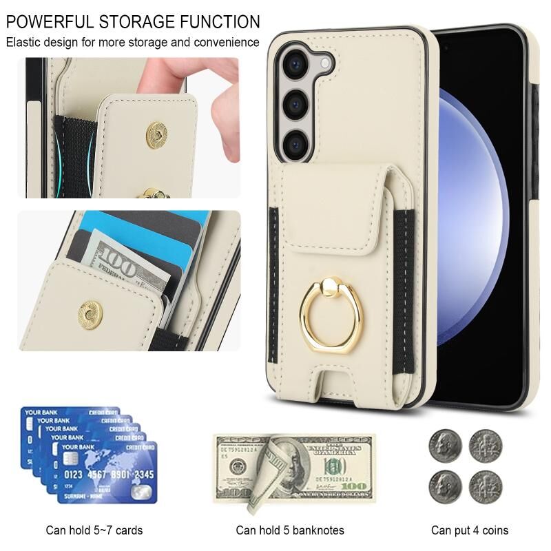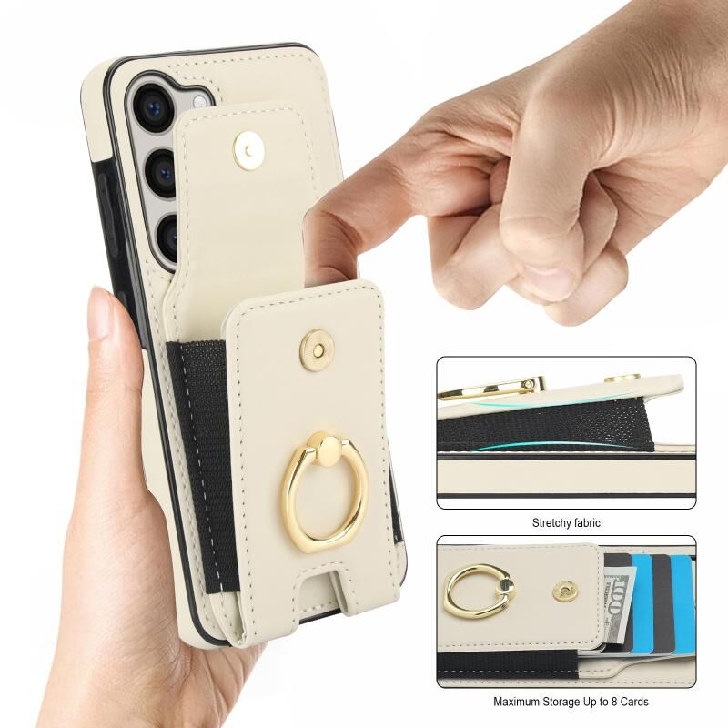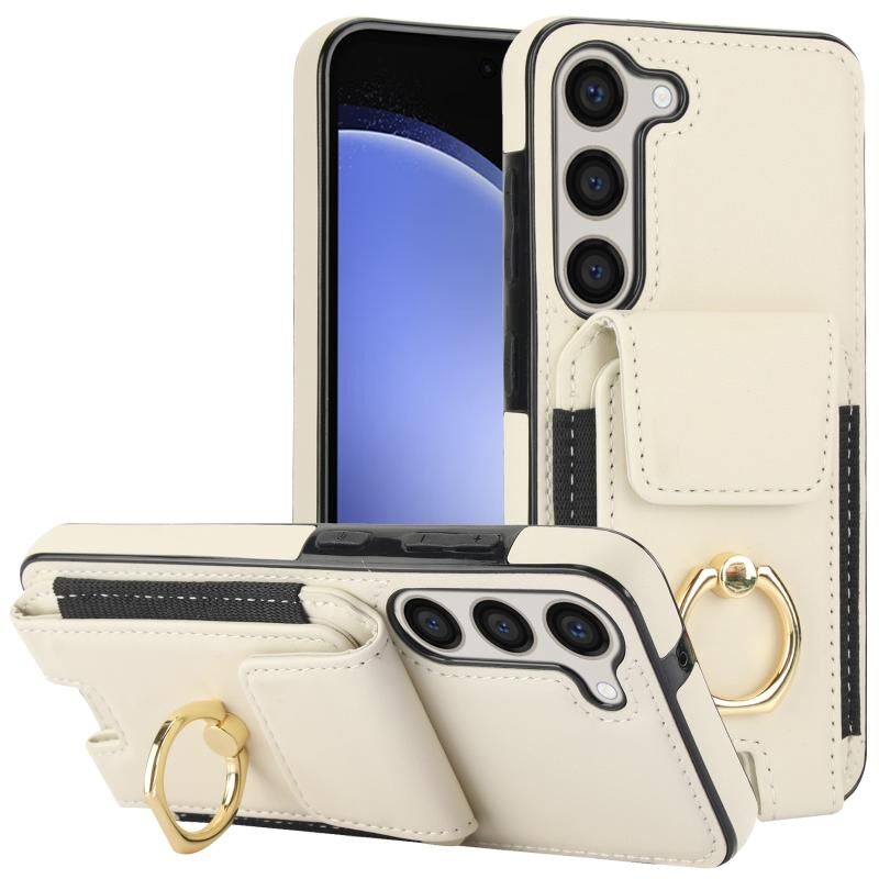 Για Samsung Galaxy S23+ 5G Ελαστική κάρτα τσάντα δαχτυλίδι τσάντα κάτοχος υπόθεση τηλεφώνου (λευκό)