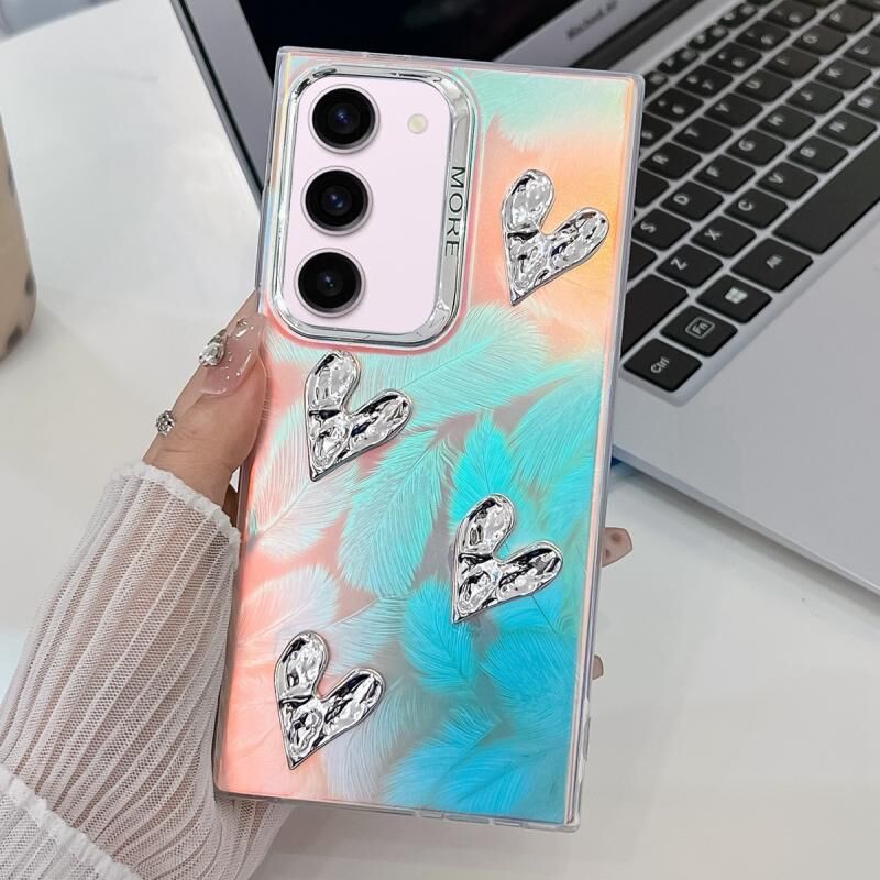 Θήκη τηλεφώνου TPU με λέιζερ και υφή 4 καρδιών, ηλεκτρολυτική επικάλυψη για Samsung Galaxy S23+ 5G (Φτερά)