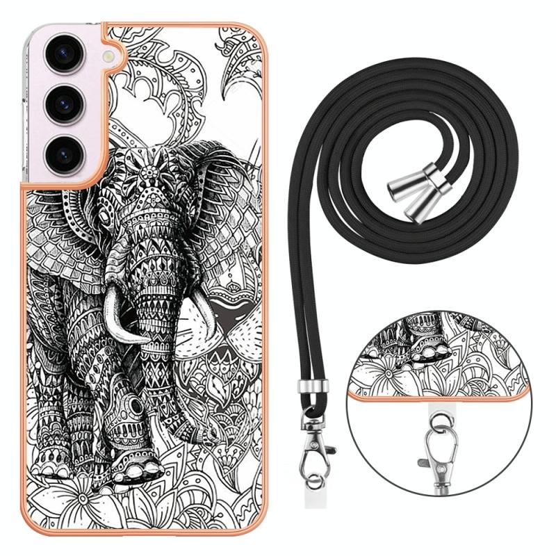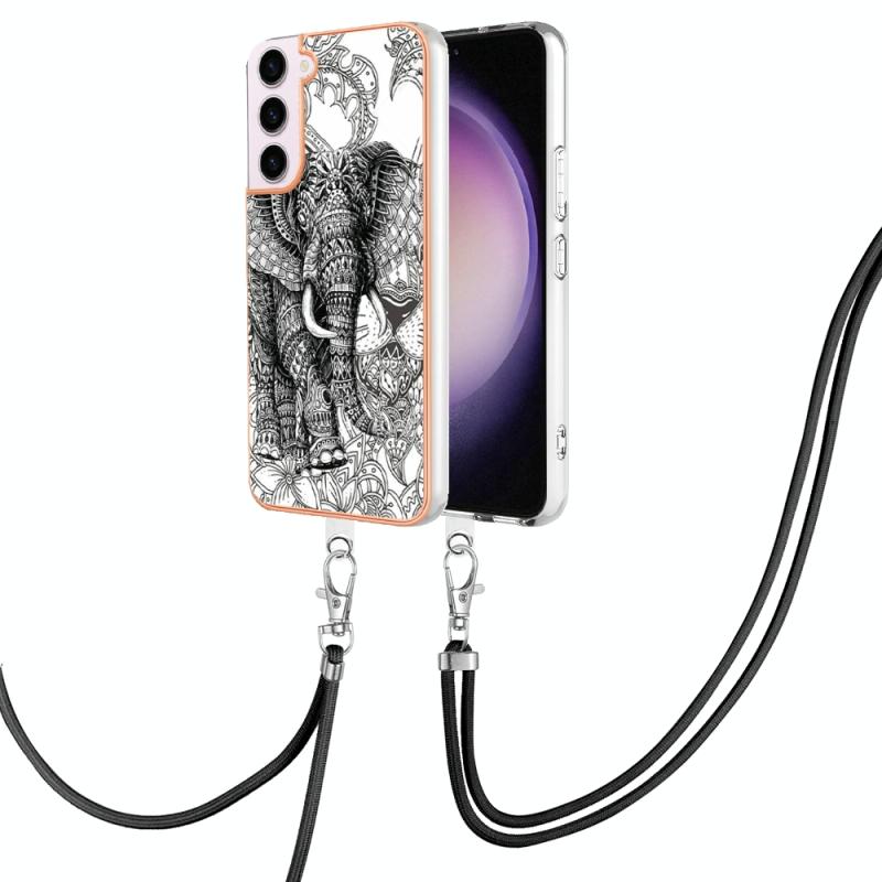 For Samsung Galaxy S23 5G Electroplating Dual-side IMD Phone Case with Lanyard(Totem Elephant)