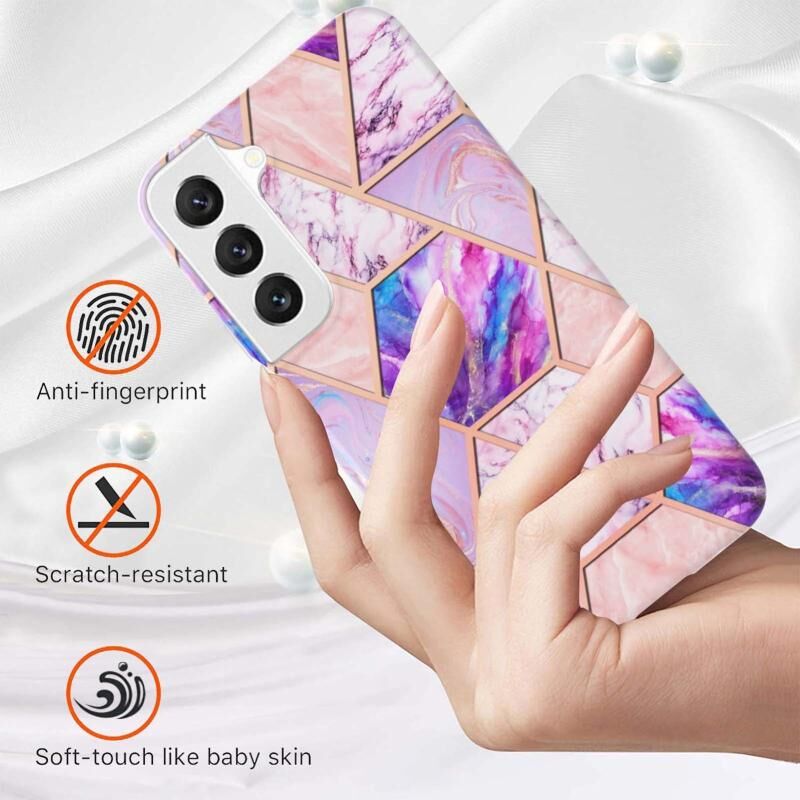 Θήκη τηλεφώνου Samsung Galaxy S23+ 5G με ηλεκτρολυτική επιμετάλλωση IMD, συνδυασμό χρωμάτων και μαρμάρινη TPU σε δύο όψεις (Σκούρο Μωβ)