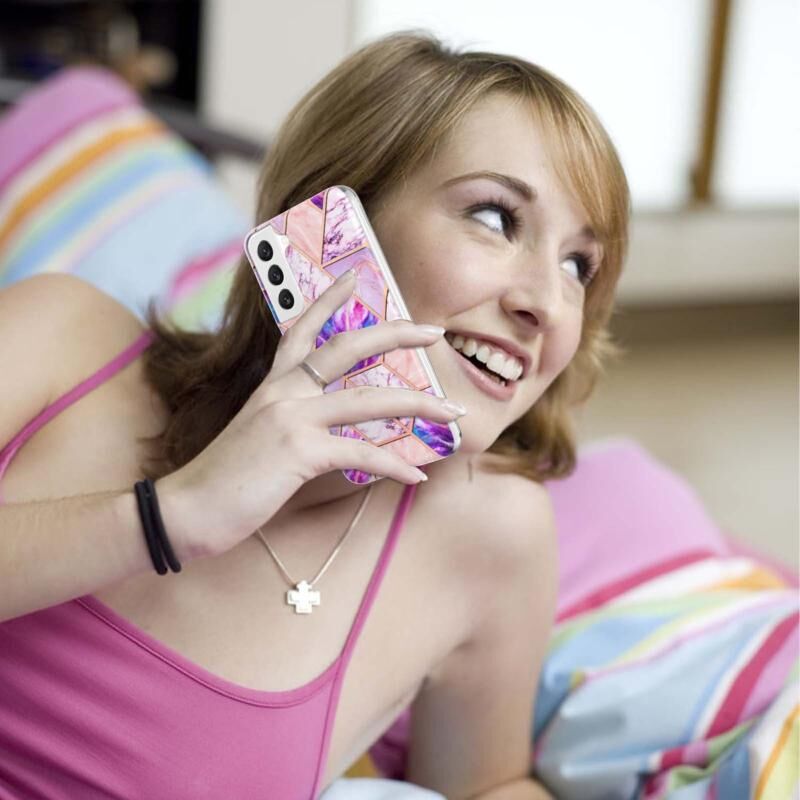 4. Χαριτωμένο και κομψό σχέδιο: Δροσερή και κομψή εμφάνιση με ηλεκτρολυτικό IMD μοτίβο μαρμάρου λουλουδιού, προστατεύει το τηλέφωνό σας με στυλ.