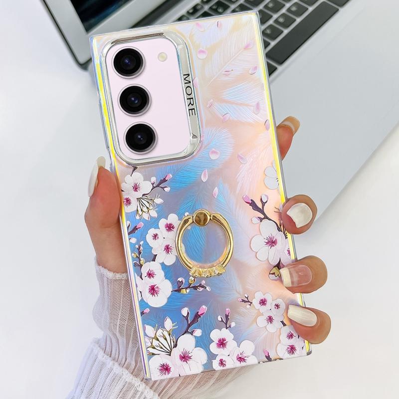 For Samsung Galaxy S23+ 5G Electroplating Laser Flower Ring Holder TPU Phone Case(Plum Blossom AH18)