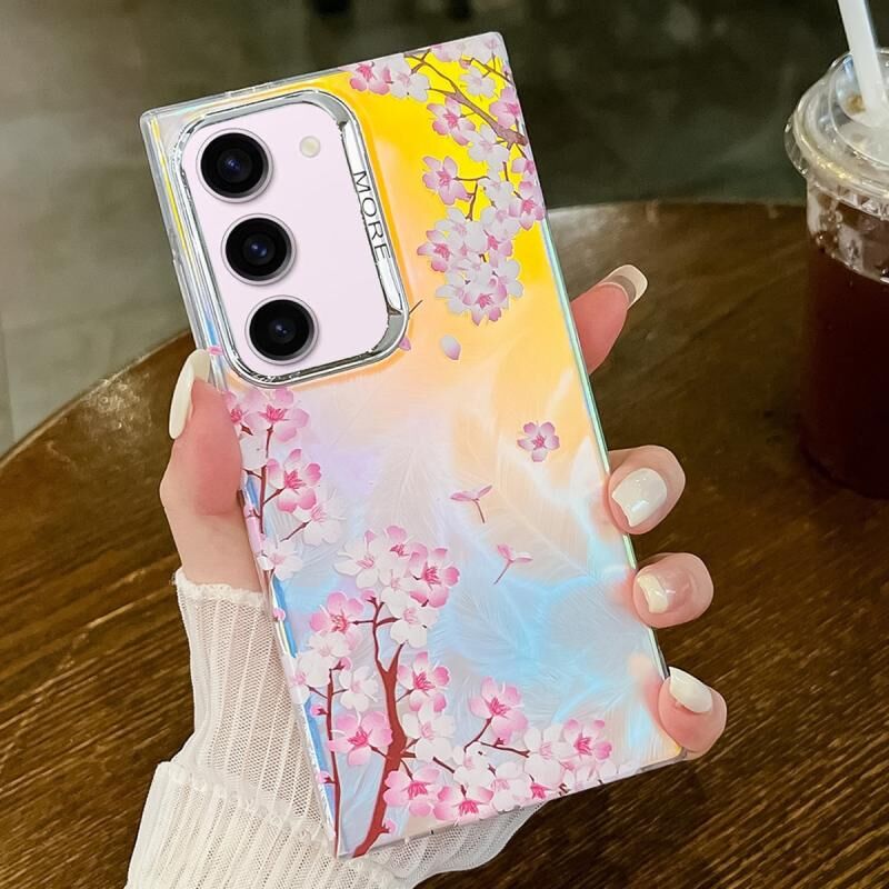 Θήκη τηλεφώνου TPU με ηλεκτρολυτική επίστρωση και υφή λουλουδιού laser για Samsung Galaxy S23+ 5G (Ανθός ροδακινιάς AH4)