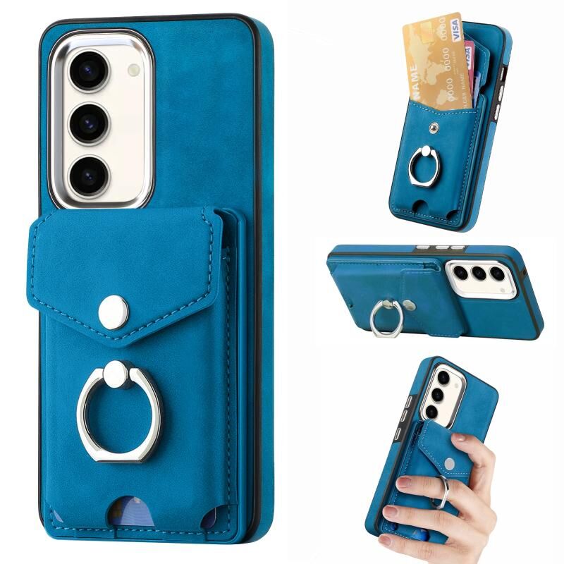Για Samsung Galaxy S23 5G Electroplating Skin-feel δέρμα δαχτυλίδι κάρτα πορτοφόλι υπόθεση τηλεφώνου (μπλε)