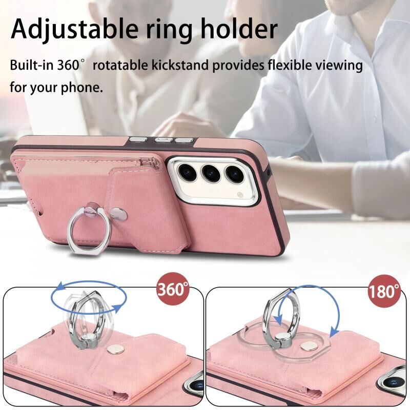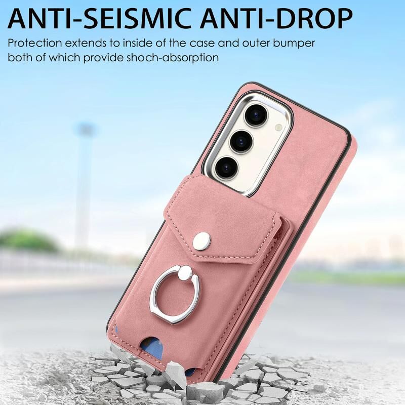 Για Samsung Galaxy S23 5G Electroplating Skin-feel δέρμα δαχτυλίδι κάρτα πορτοφόλι υπόθεση τηλεφώνου (ροζ)
