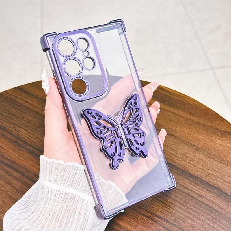 For Samsung Galaxy S23+ 5G Electrpolated 3D Butterfly Holder TPU Phone Case(Blue)