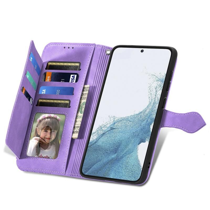 Για Samsung Galaxy S23 5G ανάγλυφο λουλούδι φερμουάρ δερμάτινη θήκη τηλεφώνου (μωβ)